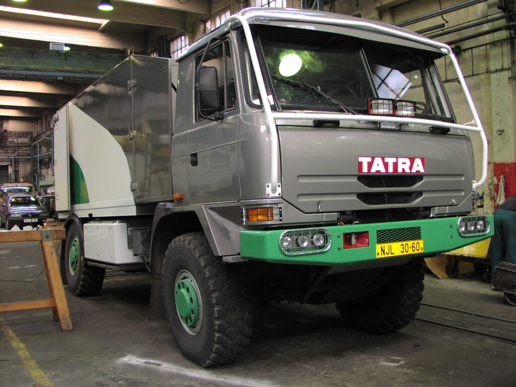 V souvislosti se změnou kabiny prošlo rekonstrukcí i řazení převodovky na nové provedení s teleskopickým táhlem. Drobnou úpravou prošla maska vozu, kde kvůli lepšímu přístupu chladícího vzduchu k motoru byl vypuštěn kruhový znak Tatra zasahující do horního „úsměvu“. Samotné štěrbiny byly proti sériovému provedení rozšířeny na maximální možnou šířku danou šířkou předních sloupků kabiny. Nová byla i kompletně uzavřená skříňová nástavba se sendvičovými povrchovými panely s dvojitými zadními vraty v zadní části – vyrobila a dodala ji firma Alu-SV. Po obou stranách rámu byly palivové nádrže o celkovém objemu 900 l. Prostor mezi kabinou a nástavbou překrývaly otvírací „krovky“.